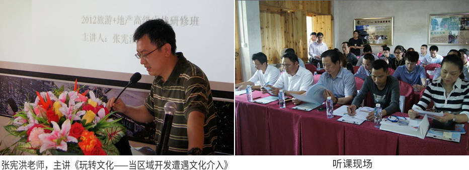 第二講《玩轉文化——當區域開發遭遇文化介入》由艾肯董事副總經理張憲洪先生主講。張老師的課程針對性強,指導意義突出。課程首先提出了目前地產行業發展中出現的困境,再通過對國家政策以及現在國內旅游發展現狀分析研究,指出文化因素必須得到相關開發商的重視,只有擁有文化內涵的產品才能深入人心,我們應該把文化項目當成一種事業在進行,也應該充分利用資源以形成文化產業鏈來運作。