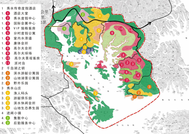 本項目位于千島湖中心湖區的進賢灣和安龍半島,占地15平方公里,其中水域面積6平方公里,擁有極為優越的山水自然條件。千島湖是中國5A級國家風景名勝區,也是現存面積最大的森林公園。項目資源豐富,島湖交錯,但如何利用好項目地的島湖資源,找到項目地的特色,發揮項目的優勢特點,為其打造一系列配套的旅游產品,從而搶占島湖旅游的制高點是項目的一大難點。
