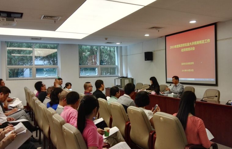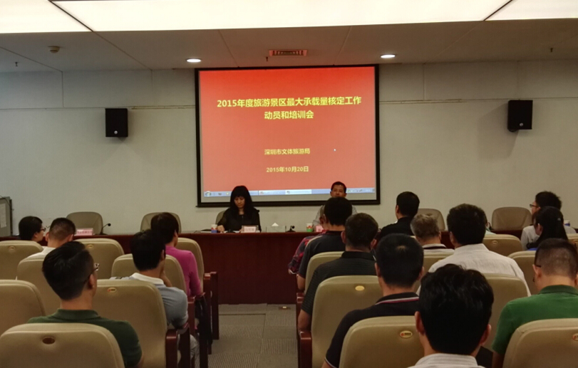 10月20日下午,在市民中心C區1120會議室,召開了由深圳市文體旅游局推廣促進處處長陳標、馬雪瑜主持的2015年度旅游景區最大承載量核定工作動員和培訓會議。艾肯卓悅總經理黃飛翔帶領艾肯弘揚副總經理劉峰、策劃部經理胡青芳參加了此次會議。另外,還包括深圳市各片區經濟促進會、文體局、經濟服務局和20家景區負責人。
