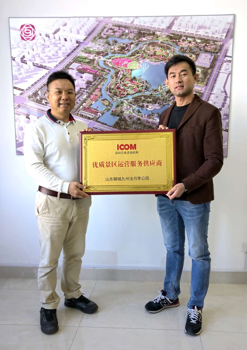 金秋十月,美麗的聊城九州洼月季公園風光秀麗,游人如織。在這個豐收的季節,園區舉行“金牌景區運營服務供應商”授牌儀式,表彰深圳艾肯咨詢機構在九州洼月季公園籌建、運營中專業的工作態度以及取得的突出成績。九州洼月季公園董事長蔣勇、深圳艾肯機構聊城項目負責人周鴻飛以及公園中高層管理團隊代表出席了本次授牌儀式。