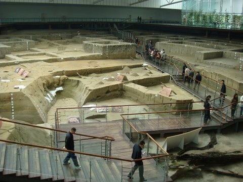 遺址區,我們沿著木制通道近距離參觀當年的發掘現場。恢宏的場面讓我們好像看到了先人們在此生活的場景,可以想象到3000年前的古蜀王國繁榮景象。