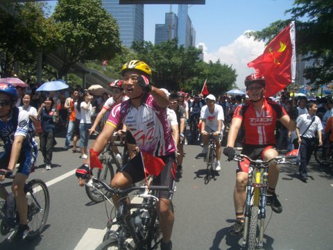 許多自行車隊、溜冰隊等組織積極宣傳奧運精神,弘揚愛國情。