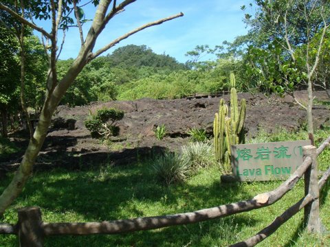 考察團主要對火山群的核心園區進行考察。這里擁有相當豐富的火山地質地貌景觀,有大小火山口十多座,火山噴發后形成的熔巖流遺跡多處,還有火山臺地、火山溶洞等火山地區特殊景觀。這些景觀保存完好,掩映于茂盛的熱帶火山叢林中。
