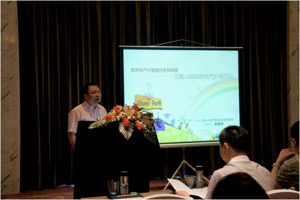 7月2日,周六,培訓課程正式開始。第一講《旅游地產價值提升系列講座--------主題公園與房地產價值互動 》由艾肯機構董事長秦曉琪先生主講。講座通過豐富的數據支撐和案例分析,印證了主題公園對房地產價值的巨大提升作用,提出主題旅游地產價值提升的關鍵是要真心實意的做旅游。同時,對中國主題公園的現狀做出了精確剖析,分析了中國主題公園存在的主要弊病并試圖尋找突破口。