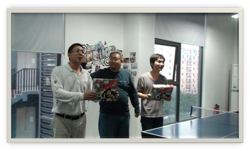 艾肯公司自成立以來,就有一張專業的乒乓球臺。忙碌在策劃規劃行業的艾肯成員們,也會在茶語飯后殺上幾個回合釋放工作壓力。艾肯在成長,乒乓球隊伍也在逐漸壯大,并初步形成了乒乓球實力排行榜(類似于江湖上流傳已久的百曉生兵器排行榜)。此榜一出,隨即在乒乓球界掀起了血雨腥風。各位愛好者經常為證明自己的實力,約上戰友,狂殺幾局,直到大汗淋漓,分出勝負。2013年1月29日,一位神秘嘉賓列出乒乓球實力對抗賽的陣列,并將其拋向艾肯乒乓江湖,因其滿足了各位乒乓愛好者“華山論劍”的心愿,所以此次比試得到了積極響應。于是乎艾肯第一屆乒乓球賽產生啦。