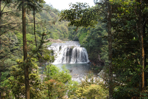 接著是望。考察團隊在叢林間穿梭,探尋著瀑布的蹤跡。正所謂,站得高看得遠。考察團隊沿著85°的陡峭山壁,借助樹干等支撐物來到山澗,期望在崇山峻嶺間偶遇那些幽深的美麗峽谷。靜靜的陽光透過茂盛的樹林,斑駁的灑落在每個人的臉上,叢林中時不時傳來考察團隊有關瀑布的討論,和著不知名的蟲鳴鳥叫。在這初春時節(jié),在大都市久待的他們,這次叢林探險也算是痛并快樂著吧。