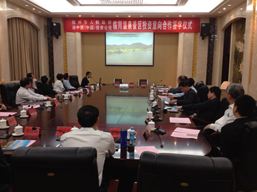 3月30日,我公司副總經理劉峰先生和設計總監鄔尚武受撫州臨川溫泉景區管委會之邀,飛赴江西撫州,參加撫州市人民政府與港中旅(中國)投資公司舉辦的關于臨川溫泉景區項目投資意向簽約儀式。