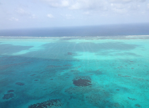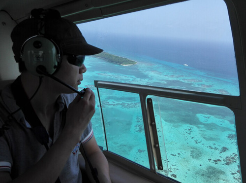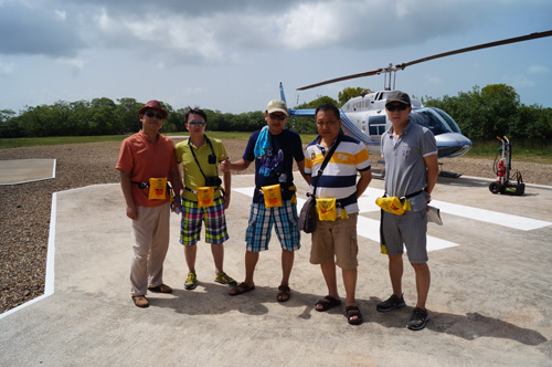 面對著湛藍海域的致命吸引力,考察團隊坐上直升飛機從高空中俯瞰這片充滿魅力的海域。一望無際的海水澄澈見底,海底下是五彩斑斕的熱帶魚隊及依舊生命力盎然的各色珊瑚,在海面上行駛的游艇似一片片漂浮在藍色海面上的云朵,云朵上的人兒熱情的向直升機上的考察團隊打招呼,這一切都讓這次高空考察別開生面回味無窮。高空海域考察項目怎么能遺漏蜚聲海內外的大藍洞(Great Blue Hole)呢。大藍洞是全世界最大的水下洞穴,直徑約為304米,洞深約122米,位于伯利茲外海約96.5公里處, 也是世界十大潛水寶地之一。從高空俯瞰,深邃的大藍洞充滿著無限神秘色彩。