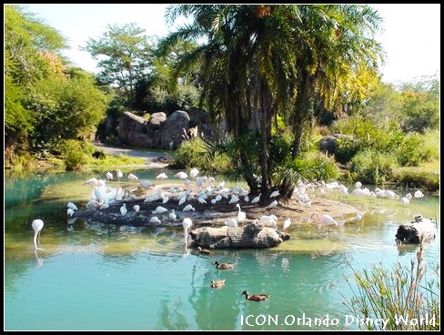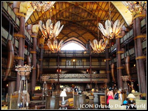 Animal kingdom lodge(動物王國客棧),建筑面積7.2萬平方米,1293間客房,建筑布局上象一個半圓型的非洲村落,家具純木質(zhì)手雕,在茅草蓋的大廳中小溪涓涓而流。朝外望去,是寬闊的草坪,草坪上是成群結(jié)隊的長頸鹿、斑馬、鴕鳥、瞪羚和火烈鳥等各種非洲草原上的常見動物。在這里可以“捕獲住非洲的精神與浪漫。” 客房的房價為每間199-510美元/天。