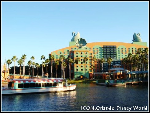 Swan Resort與Dolphin Resort南北相對,中間是個大湖,可以乘船到disney的各個園區。